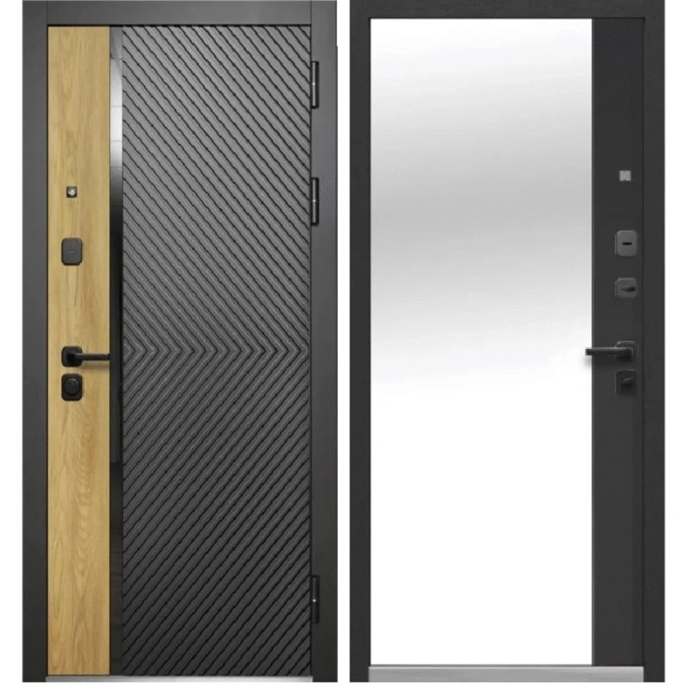 Дверь выполнена в современном дизайне, оснащена надёжными разносистемных замками и качественной фурнитурой, что гарантирует безопасность и долговечность эксплуатации. Эта дверь идеально подходит для установки в квартирах.